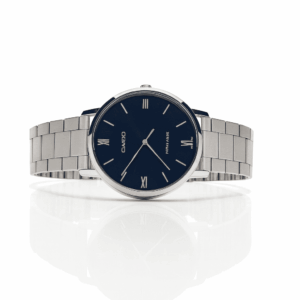 Upgrade your everyday style with this elegant Casio Men’s Analog Watch, designed for those who prefer a clean and classy look. It features a sleek deep-blue dial with minimalist hour markers, including Roman numerals at 12 and 6 for a refined touch. The slim stainless-steel case keeps the watch lightweight and comfortable, while the polished stainless-steel strap adds a premium feel.