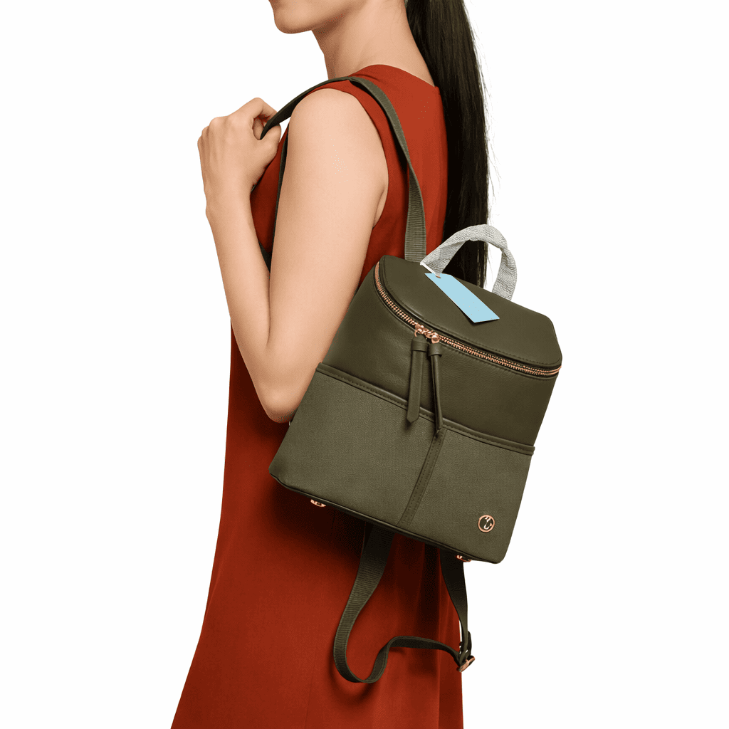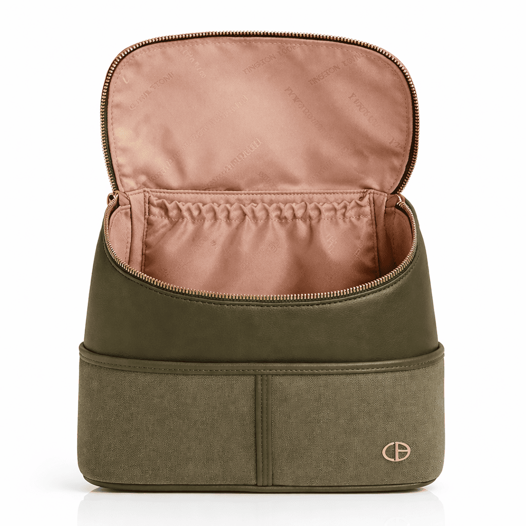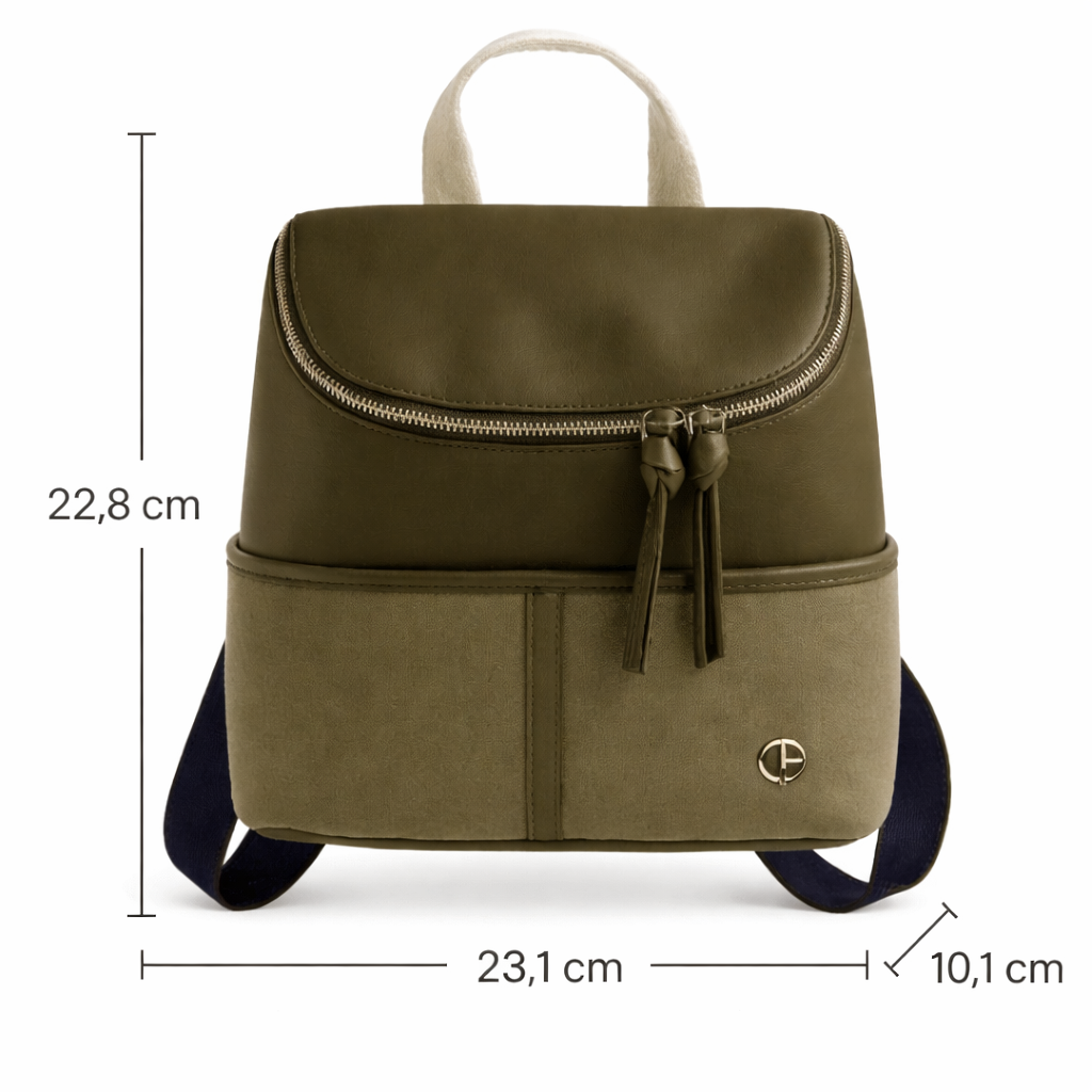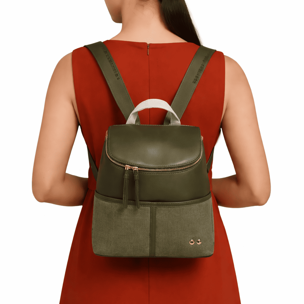 Color: Dual-tone — Olive Green (top) with Greyish Khaki (bottom); Navy Blue adjustable straps