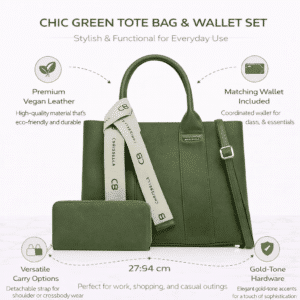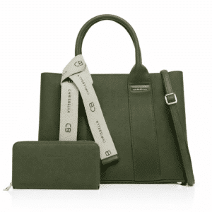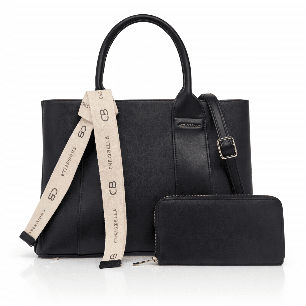 Carry your essentials in style with this sophisticated tote bag by Chrisbella. Made from durable and lightweight material, this bag features a spacious main compartment with a secure zip closure to keep your belongings safe. The detachable strap and sturdy double handles offer comfortable carrying options. It comes with a matching wallet.