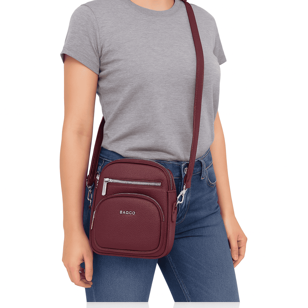 Hardware: High-quality silver-tone zippers and BAGCO engraved metal pulls.