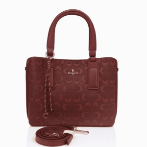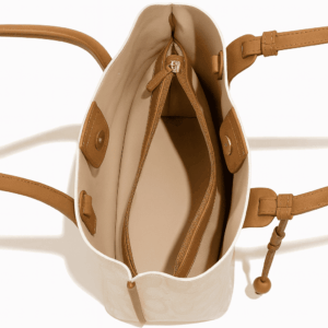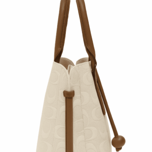 Trim & Handles: Smooth tan leather-style material on handles, borders, and accents
