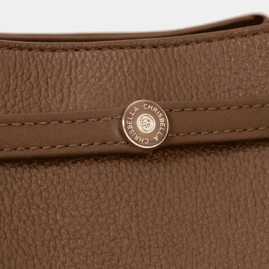 Front Design: Minimalist strap with a gold round emblem button