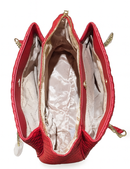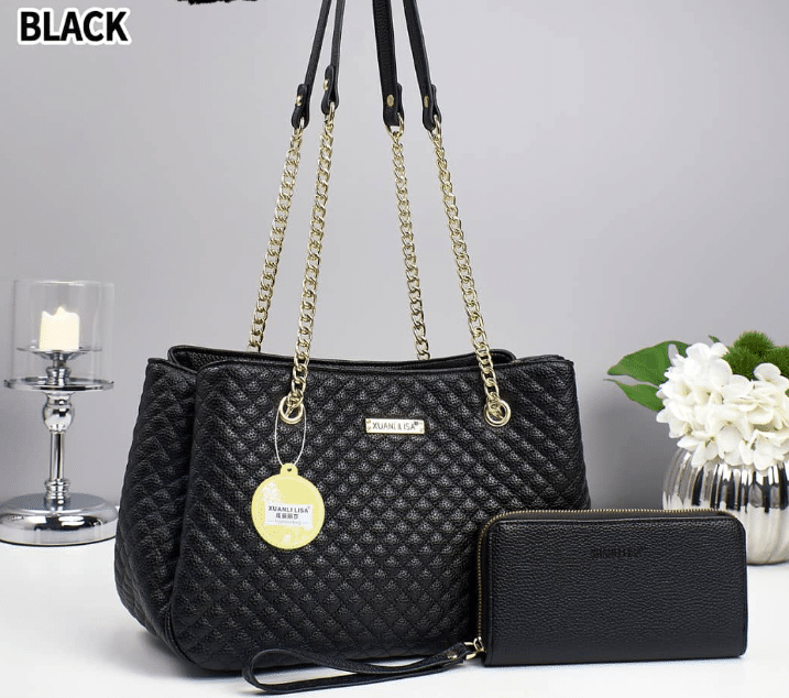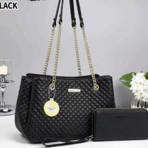 Handles: Dual gold chain handles with reinforced PU shoulder support