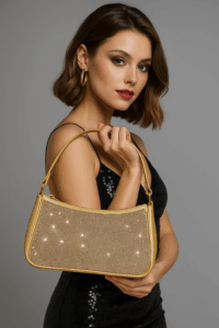 Each bag is covered with high-quality crystal rhinestones that shine beautifully under any light — perfect for parties, weddings, dinners, and night events.