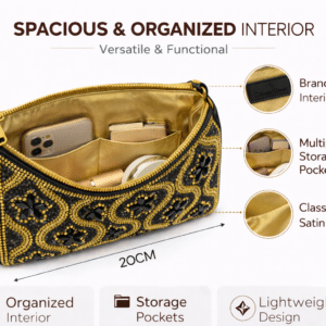 • Multi-Carry Options: Shoulder strap + detachable metal chain for crossbody or clutch styling.