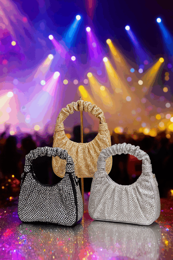 Luxury Sparkling Ruched-Handle Party Bag Collection (Gold | Silver | Black)