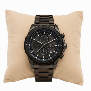 Watch is placed on a black satin display cushion inside the box adds to premium look.