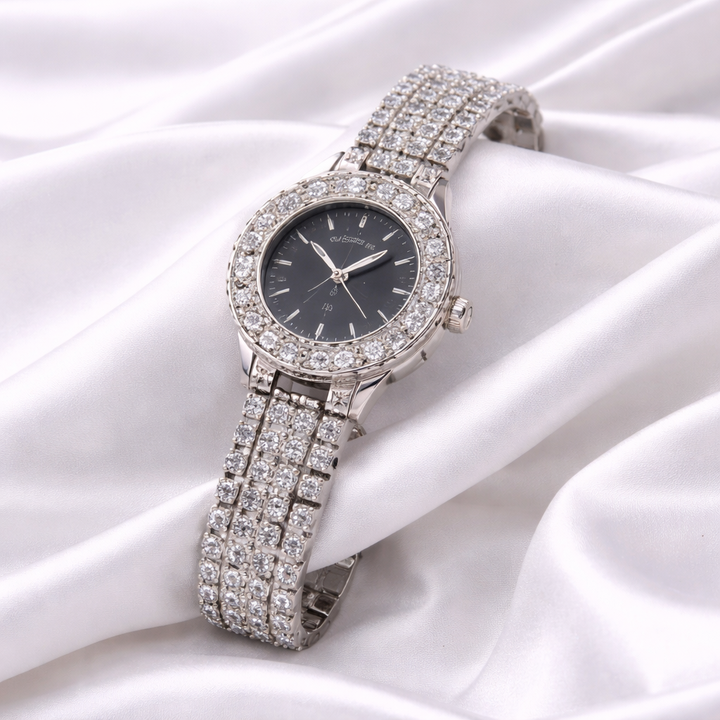 Crystal-embellished wristwatch with a sleek, feminine dial