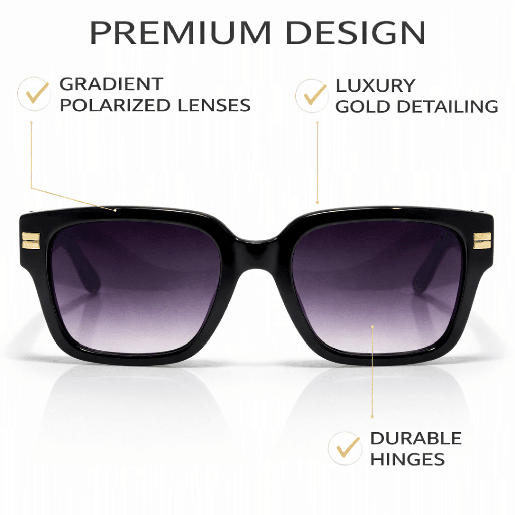 CARAZA Women’s Square Sunglasses – Gradient Polarized Lenses, Premium Glossy Frame with Gold Detail