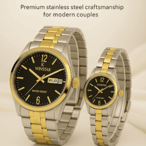 WINSTAR Couple Watch Set for Men & Women – Premium Gold & Silver Stainless Steel