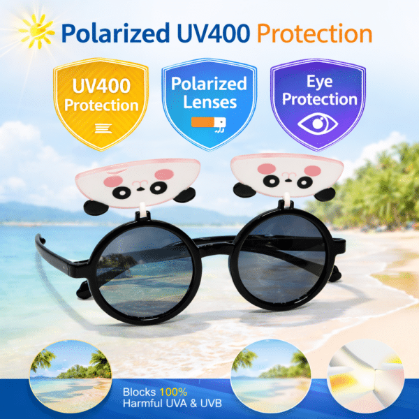 Give your child stylish fun and reliable eye protection with these Kids Polarized Panda Sunglasses. Designed especially for active boys and girls, these sunglasses combine a cute panda look with serious protection and durability—perfect for sunny outdoor adventures.