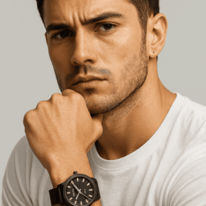 This one’s got the vibe — smooth black dial, comfy brown strap, and just the right amount of shine. Water-resistant and lightweight, it’s ready to go wherever you do.