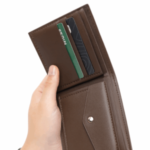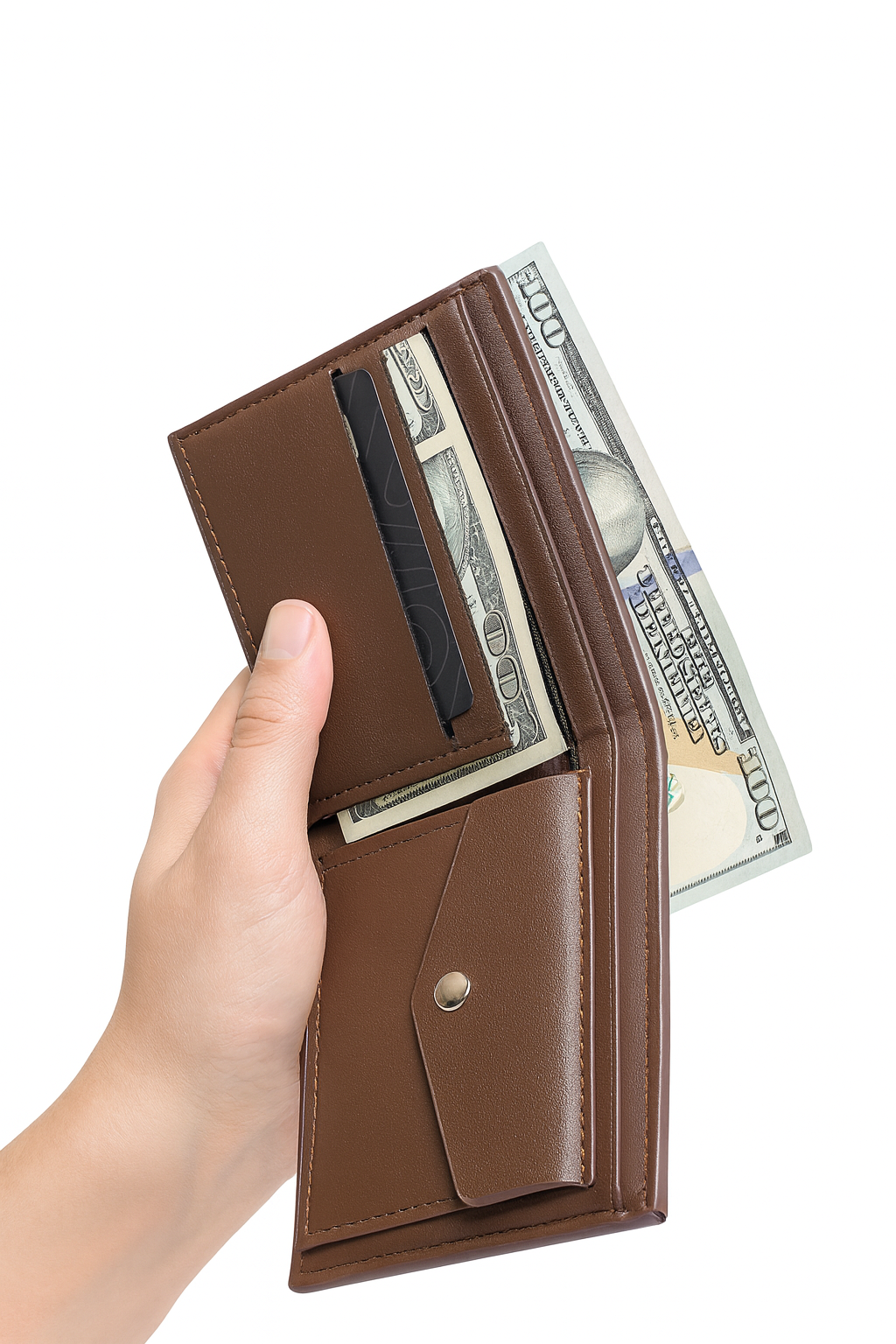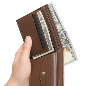 Horizontal tricolor stripe accent (red, white, and navy) near the base