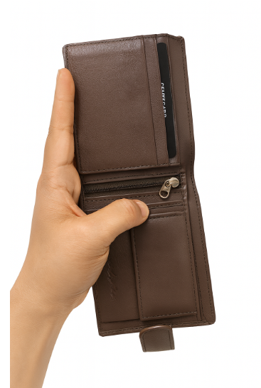 Structure: Slim design ideal for front or back pocket use, with dedicated card slots and cash compartment inside.
