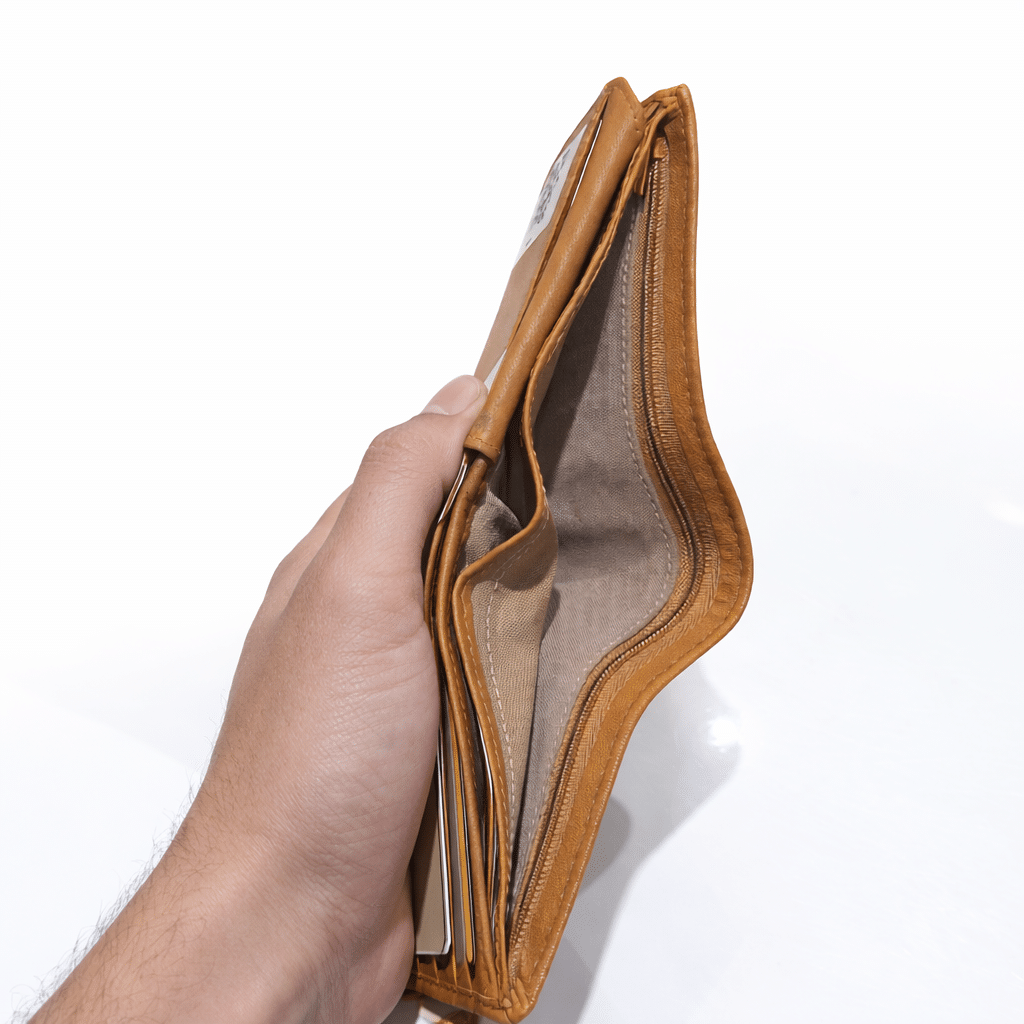 Built-in zip coin compartment keeps loose change, keys, or small essentials safe and neatly stored. -