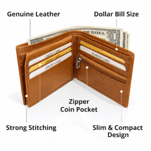 Upgrade your everyday carry with this premium genuine leather bifold wallet, designed for men who value style, durability, and smart organization. Crafted from high-quality leather with fine stitching, this wallet offers a sleek profile while providing ample space for essentials.