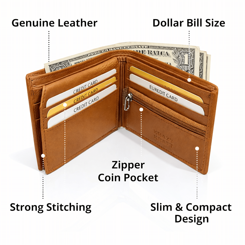 Its dollar bill size design allows US dollar notes to fit perfectly without folding, making it ideal for daily use. The compact yet functional layout ensures comfort in your pocket without bulk.