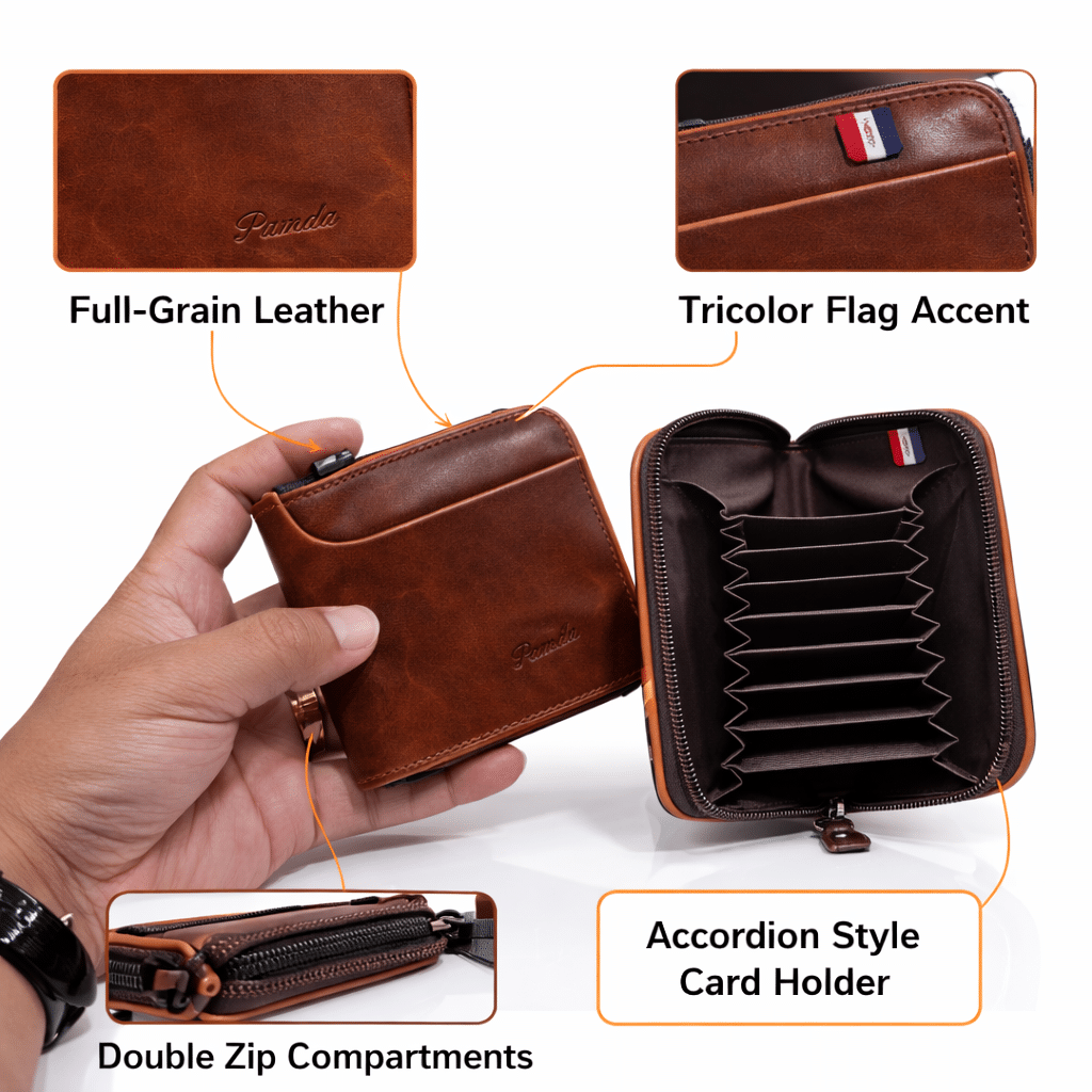 Made from high-quality genuine leather, this wallet features a compact exterior with a surprisingly spacious interior. The accordion-style card holder expands smoothly, allowing you to store and access multiple cards with ease—no more digging or bending cards.