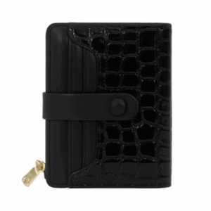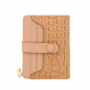 This elegant women’s compact wallet blends luxury design with everyday functionality. Crafted from premium faux leather, it features a unique crocodile-embossed texture on one side, contrasted with a smooth matte finish on the other. The wallet comes in a soft nude-mauve tone, giving it a sophisticated and modern appeal suitable for all occasions.