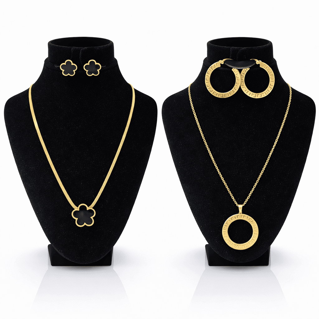 ⭐ SET 1: 10K Gold Plated Clover Necklace & Stud Earrings Set (Black)