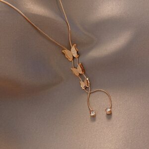 ✨ Elegant Butterfly & Floral Gold-Tone Jewelry Set – Necklace & Earrings