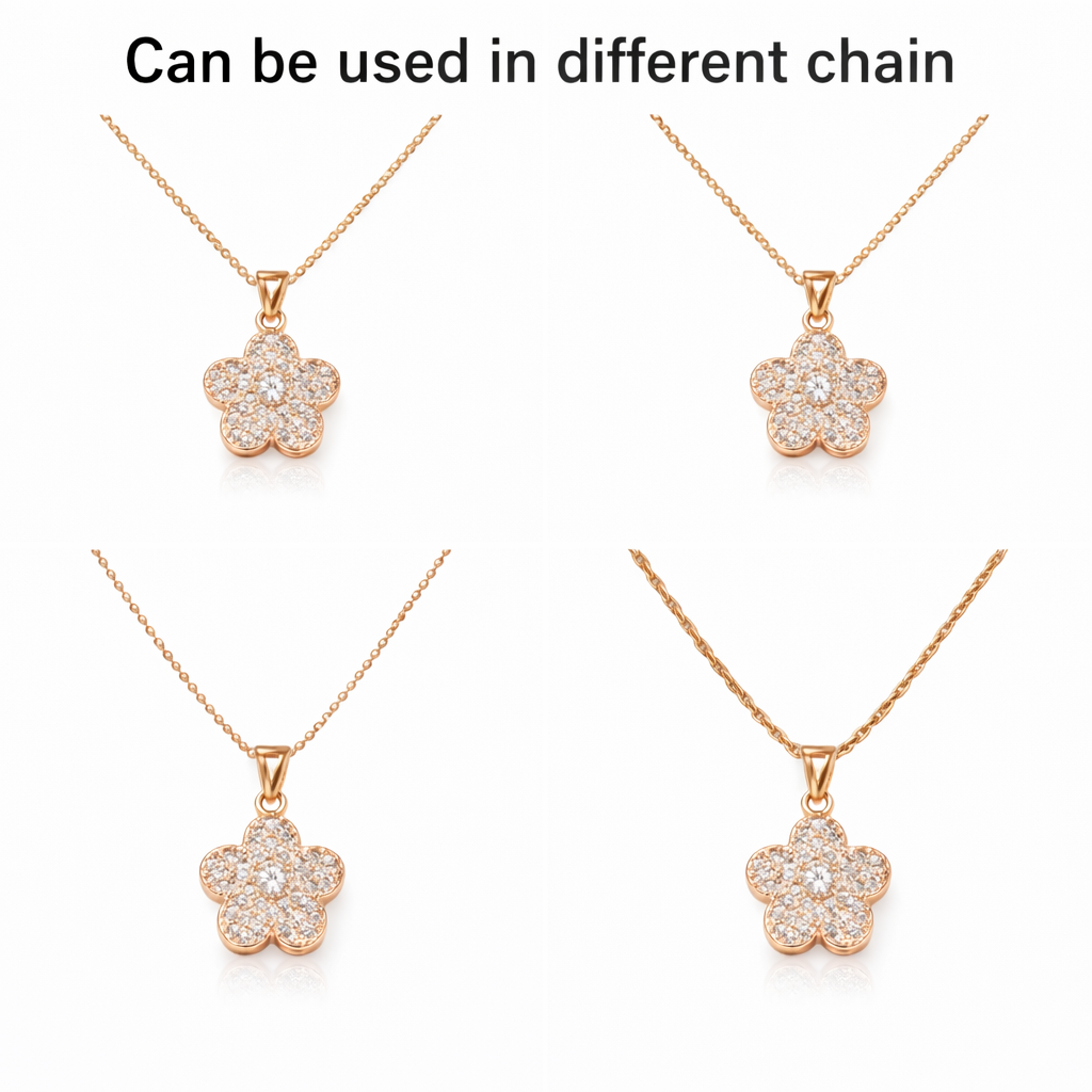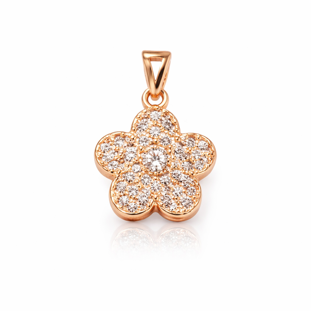✨ 10K Gold Plated Floral Crystal Jewelry Set – Pendant & Stud Earrings