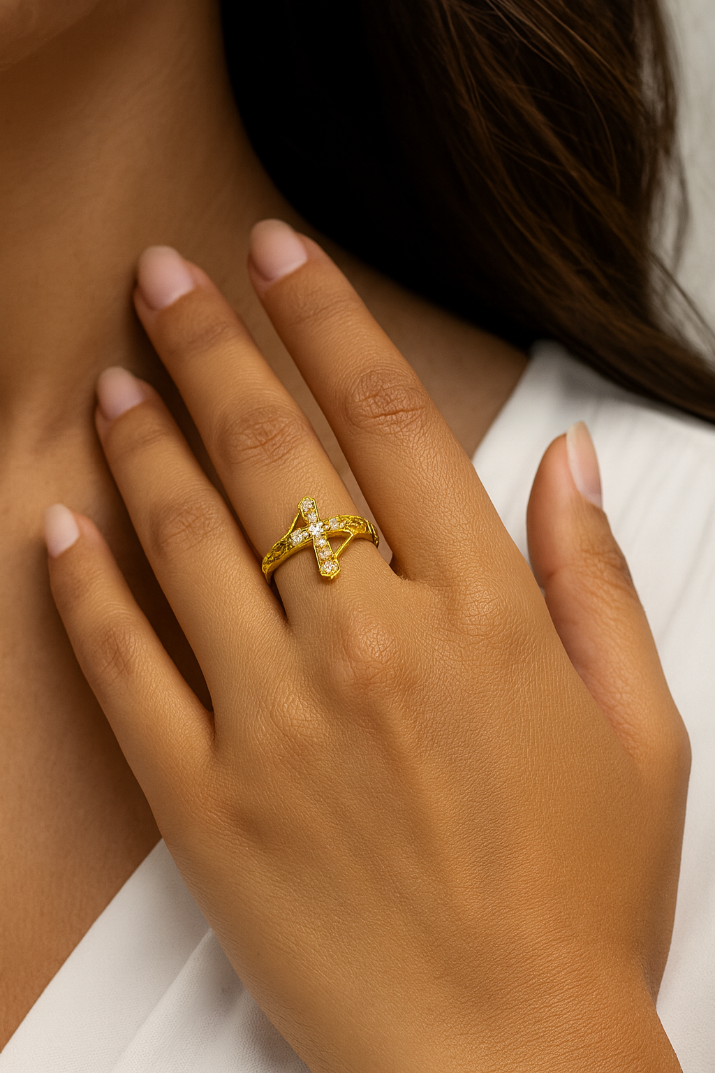 ⭐ Gold Cross Ring – Sparkling Crystal Cross Design | Elegant Women’s Jewelry